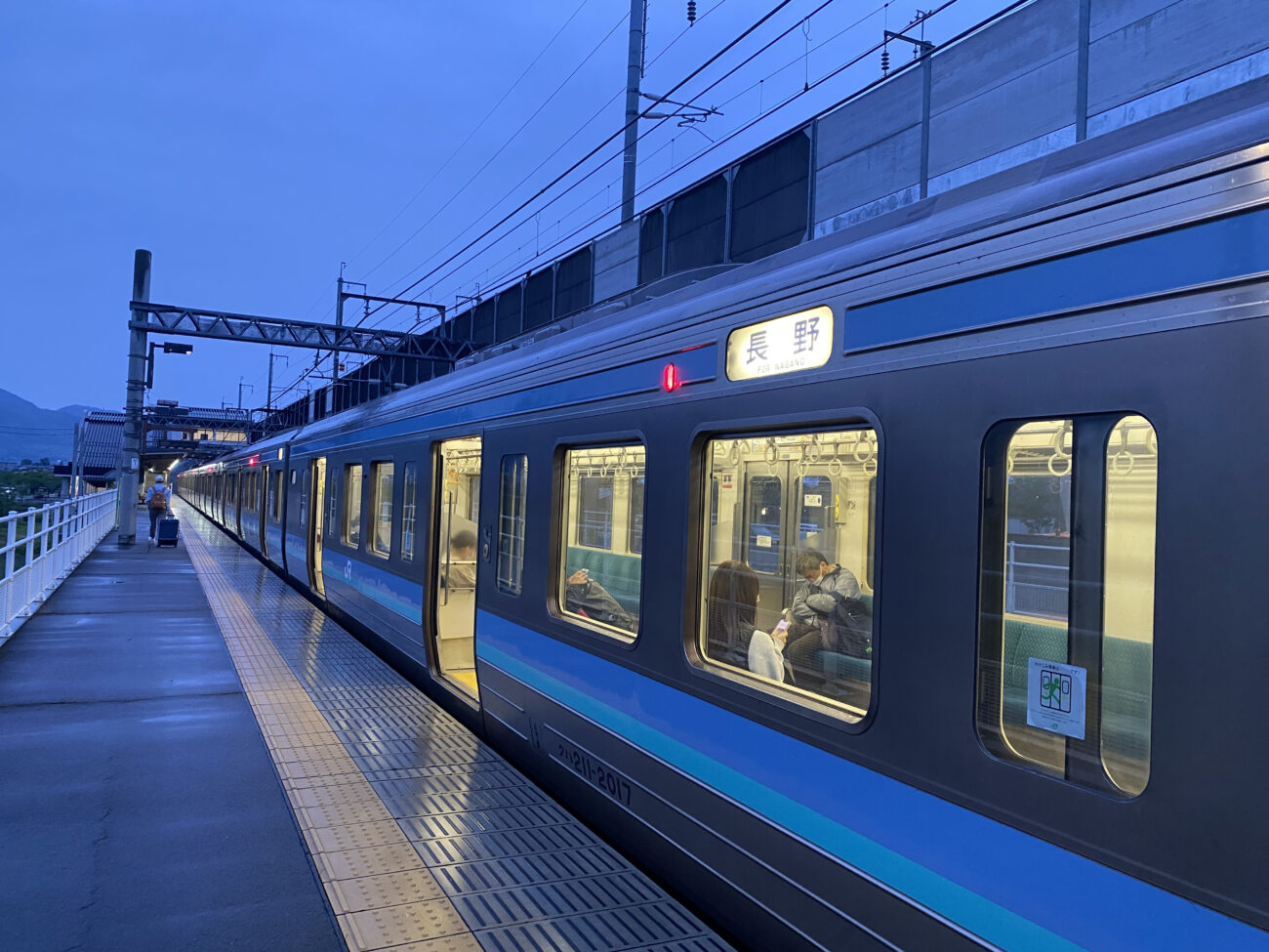 2017年のダイヤ改正により、もともと松本駅止まりだったものが夕方の通勤・通学時間帯の乗り換えを解消する目的で、そのまま長野駅まで直通になったものらしい…。