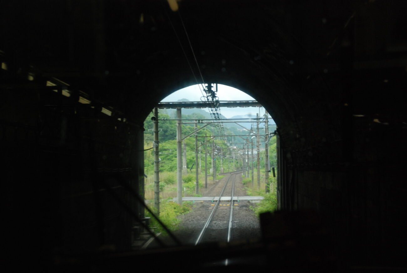明科駅を出ると次の西条駅に向かって山越えのためトンネルの中を100km/hまで加速!
