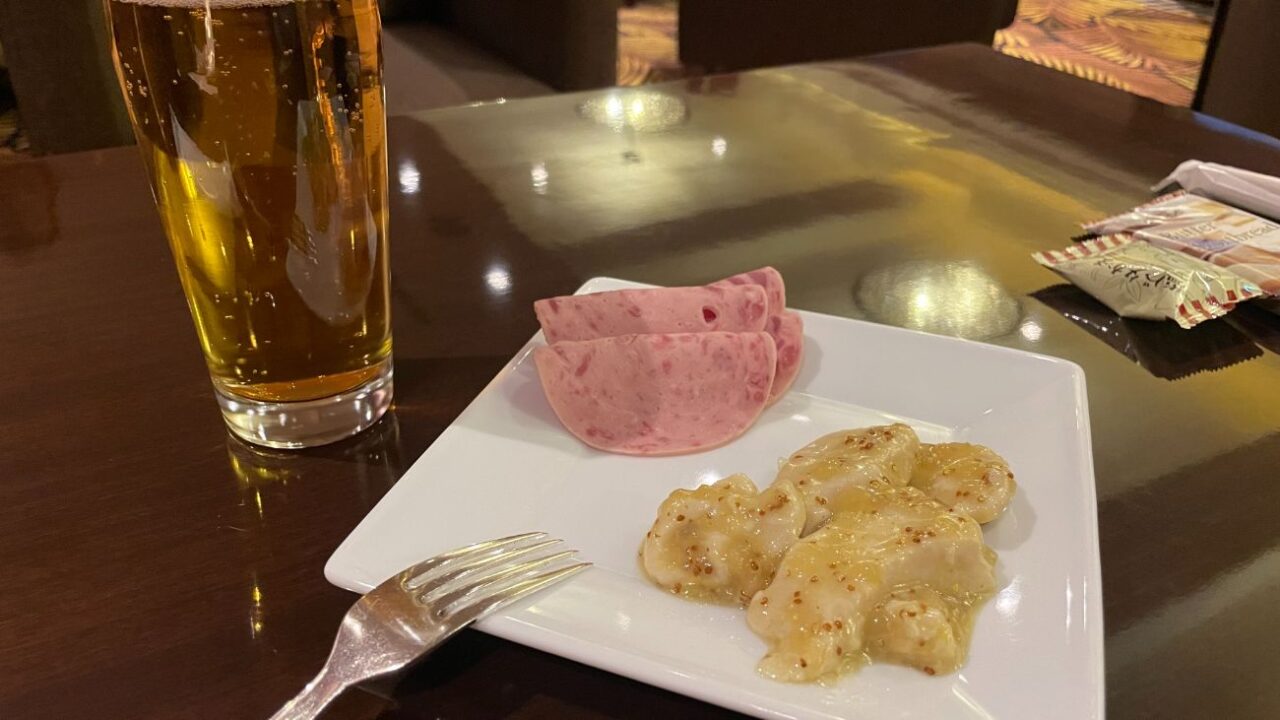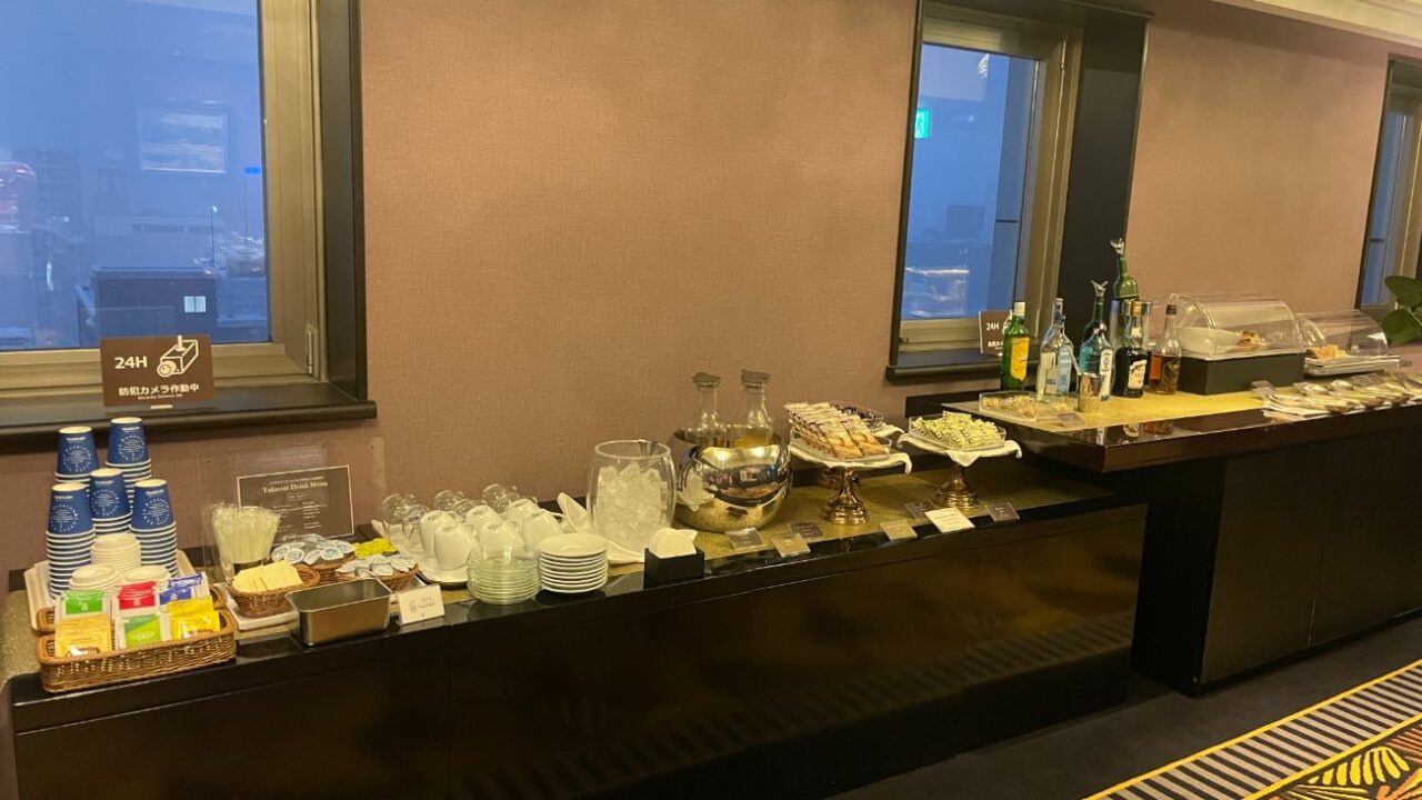 落ち着いた雰囲気のラウンジでは、スイーツやミックスピクルスといった軽食を自由にいただけます。アルコールの種類も豊富で、ワインやビールはもちろん、地元の銘柄を楽しめるのも魅力。