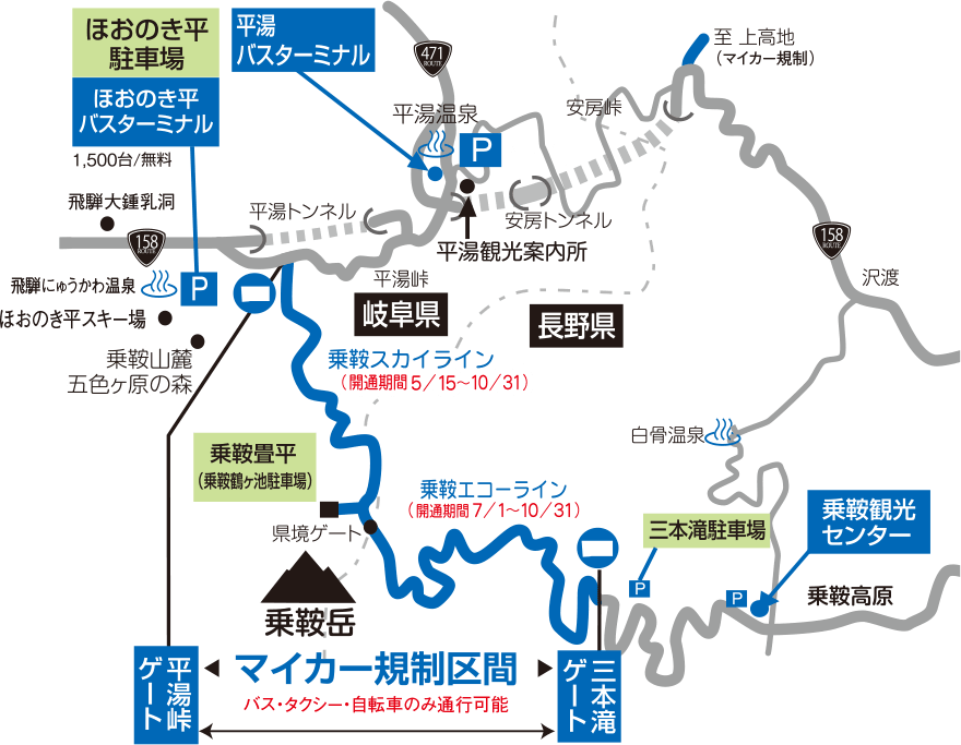 観光センターには駐車場が整備されているので安心。ここからアルピコ交通のシャトルバスに乗り込み、約50分の絶景ドライブを楽しみながら標高をぐんぐん上げていきます。窓からは乗鞍岳の裾野や遠く北アルプスの峰々も見えて、すでに観光気分が盛り上がります。